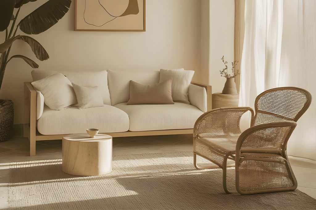• Echo the tones and textures of your key furniture pieces. For example, pair cream wool carpets or rugs with light oak.